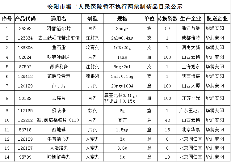 安陽(yáng)市第二人民醫院暫不執行兩票制藥品目錄公示