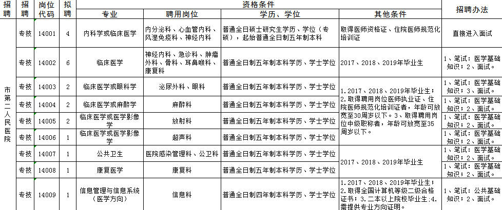 安陽(yáng)市第二人民醫院公開(kāi)招聘工作人員崗位表