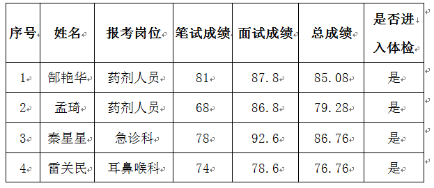 市二院2020年公開(kāi)招聘工作人員成績(jì)及進(jìn)入體檢程序人員名單