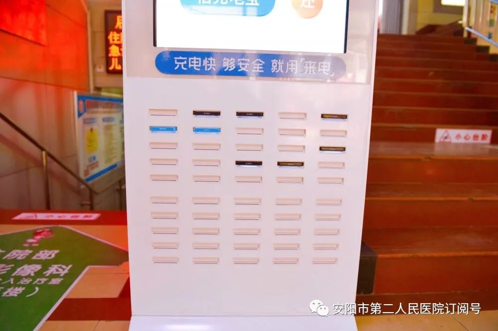 就診卡自助辦理、自助繳費、檢驗報告自助打印,縮短了患者的等候時(shí)間,讓患者直呼省時(shí)、省力。當下共享服務(wù)已成為時(shí)尚,在我院門(mén)診樓自助打印機又多了一個(gè)自助機器——共享充電寶??蓪?shí)現隨時(shí)隨地充電。