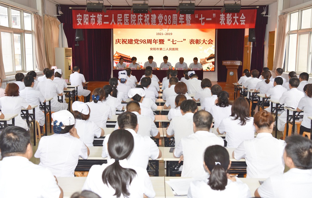 2019年6月28日,我院在行政樓三樓會(huì )議室隆重召開(kāi)慶祝建黨98周年暨“七一”表彰大會(huì ),黨委書(shū)記盧占軍及院領(lǐng)導班子、黨支部書(shū)記、黨員代表等100余人參加了會(huì )議,大會(huì )由黨委委員、院長(cháng)裴海青主持。