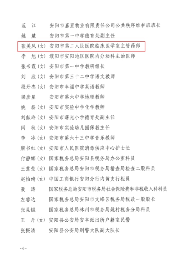 熱烈祝賀我院臨床藥師張美鳳榮獲2020年安陽(yáng)市五一勞動(dòng)獎?wù)潞凸そ常ㄈ瞬牛┟?/p>