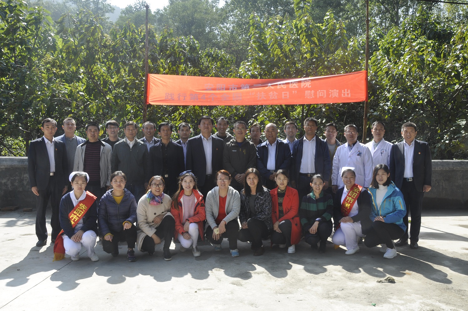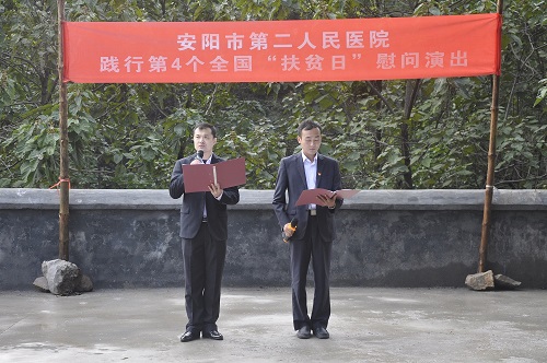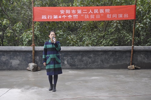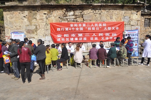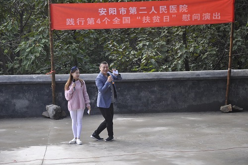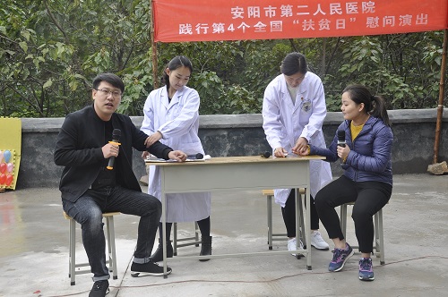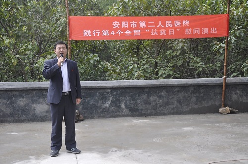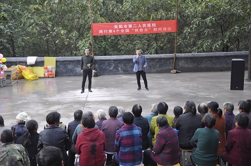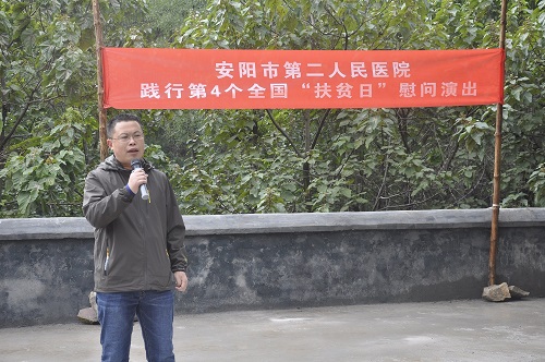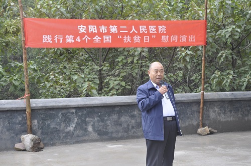 為貫徹落實(shí)全國第四個(gè)“扶貧日”。10月12日,在院黨委的周密部署下,院黨委書(shū)記盧占軍親自帶隊,黨辦主任何靜、副主任朱偉芳、門(mén)診支部書(shū)記睢德道、院辦副主任張國鋒、宣教科科長(cháng)李敏、副科長(cháng)任艷民、團委書(shū)記張莎等一行25人前往我院扶貧對口村——林州市原康鎮申家洼村舉行“扶貧日”系列活動(dòng),活動(dòng)通過(guò)“走訪(fǎng)調研、義診服務(wù)、慰問(wèn)演出、贈送扶貧物資”等形式展開(kāi)。
