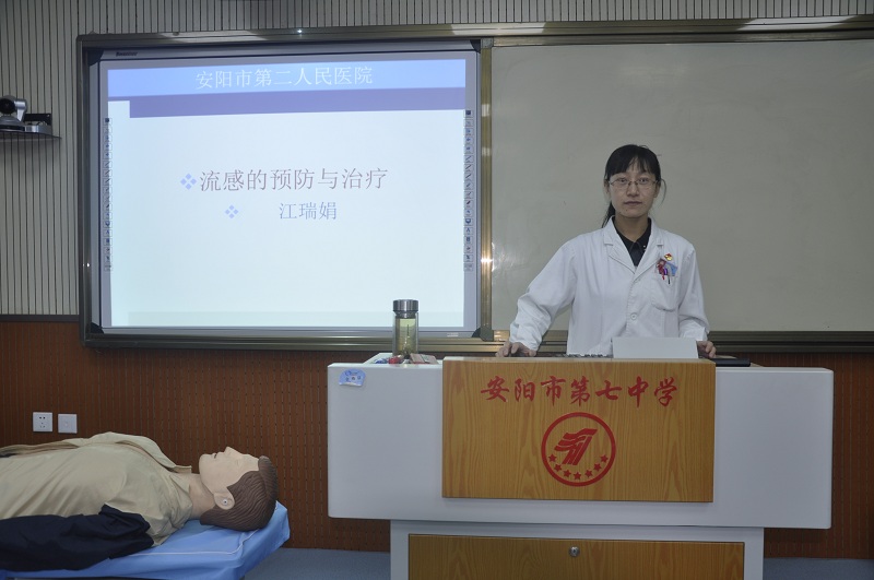 為了普及健康知識,提高青少年對疾病的防治意識和能力,2018年1月9日下午,安陽(yáng)市第二人民醫院組織醫務(wù)人員赴市七中進(jìn)行“健康安陽(yáng).共建共享”活動(dòng)講座。醫務(wù)人員為80余位師生講解了流感的預防、手衛生、心肺復蘇等知識。