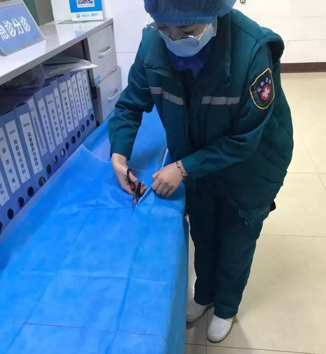 小心思起了大作用。為破解防控物資短缺的難題,我科劉麗蘭護士利用一次性無(wú)紡布、一次性中單等物品自己裁剪,一針一線(xiàn)純手工縫制成防護服,供出車(chē)人員防護使用,既節約成本,又提供了有效的安全保障。
